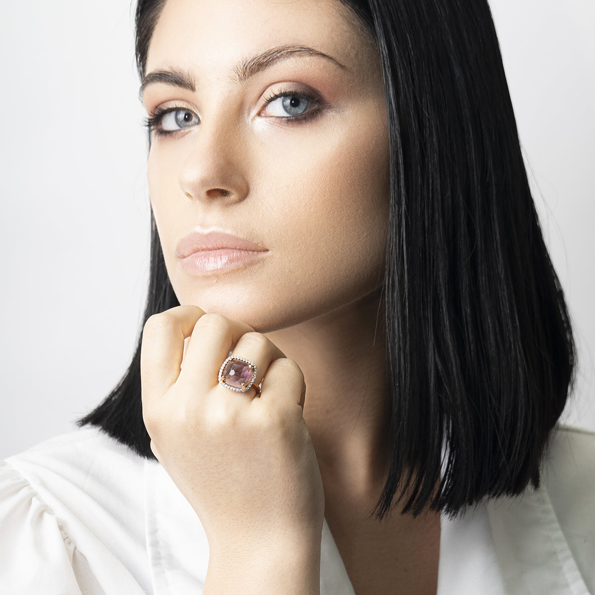Collezione Candy anello in argento 925 bagno oro rosa, luminosi cubik zirconia e pietra centrale