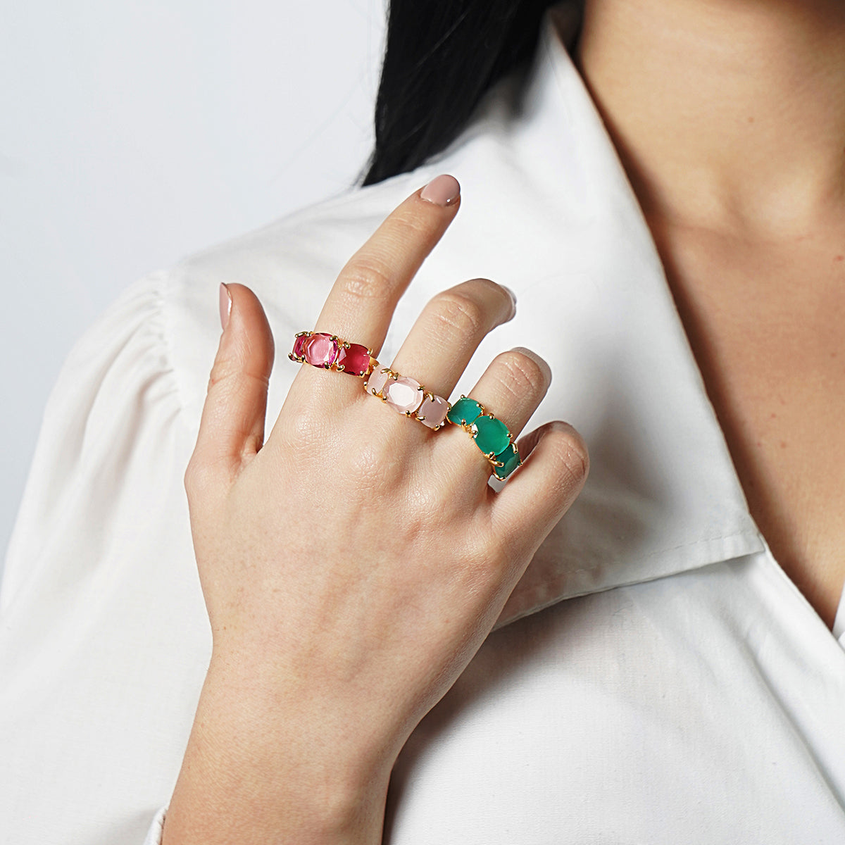 Anello in argento 925 e quarzo idrotermale con galvanica dorata. Regolabile dalla misura 12 alla 16.