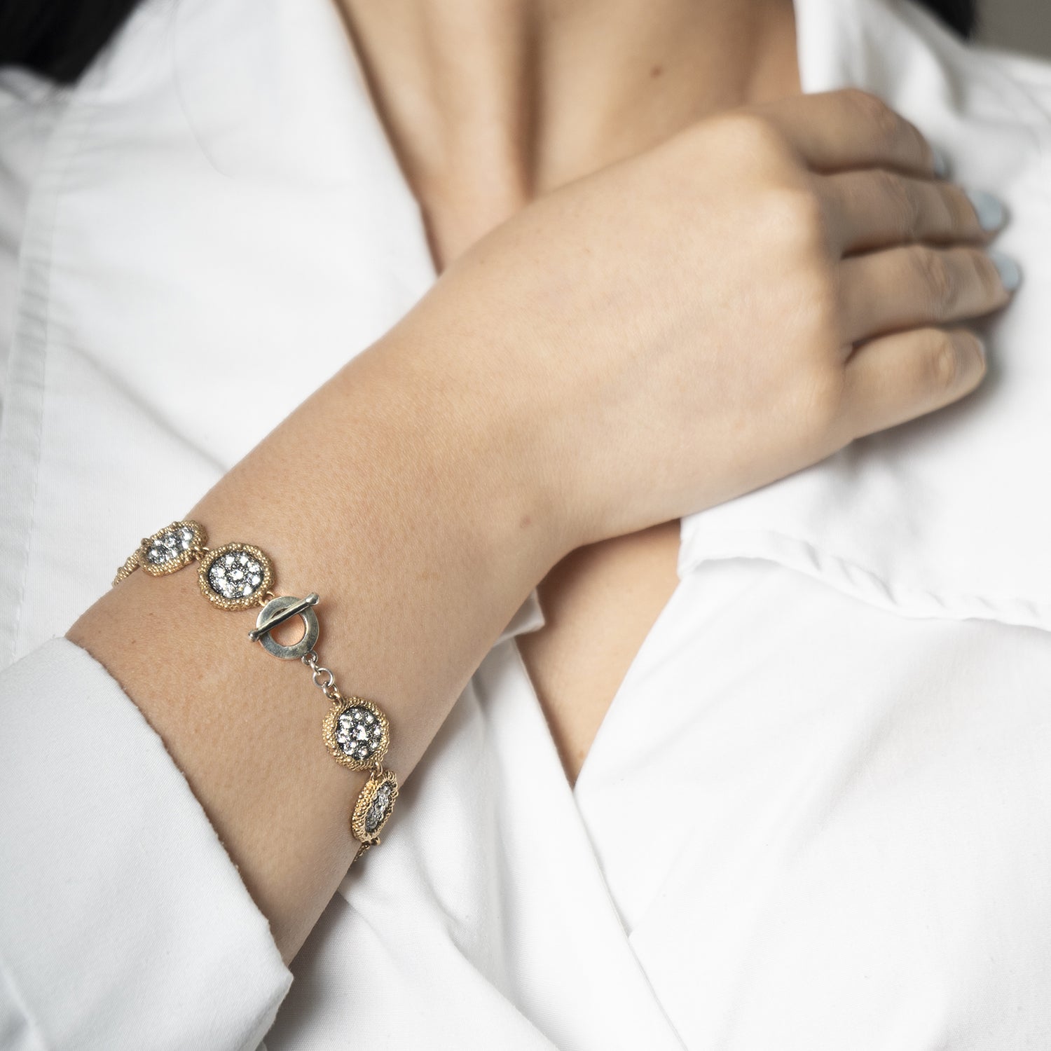 Bracciale in argento brunito e bronzo con cristalli. Collezione Toppettine - D. De Maria