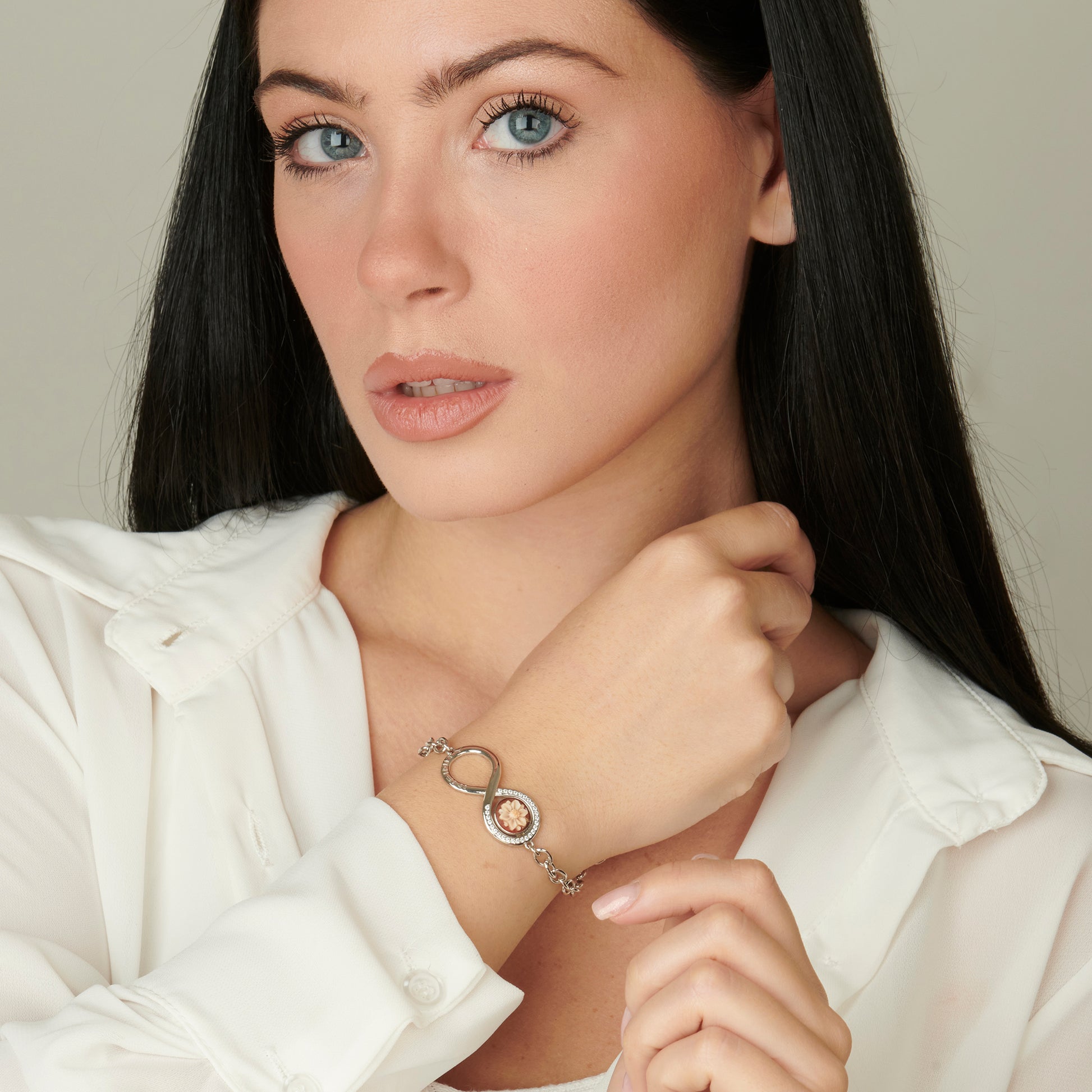 Bracciale Infinity in argento 925, zirconia e cammeo - Russo Cammei