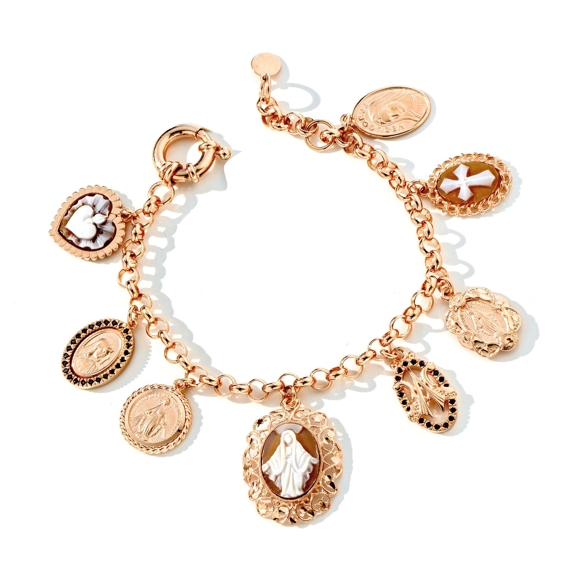 Bracciale sacro in argento 925 placcato in oro rosa 18kt con cammei- Cameo Italiano