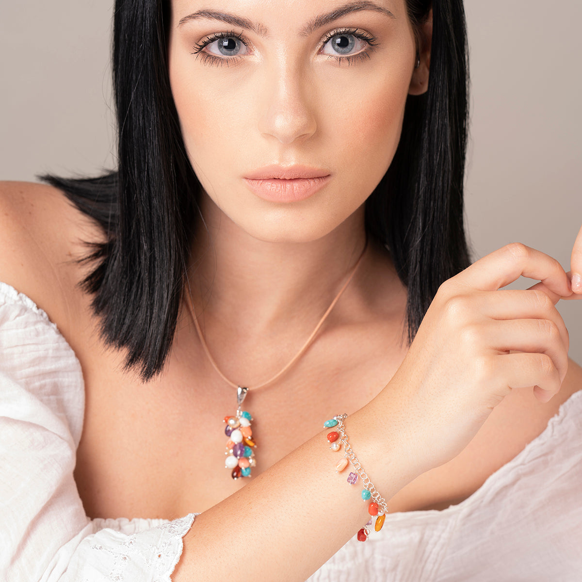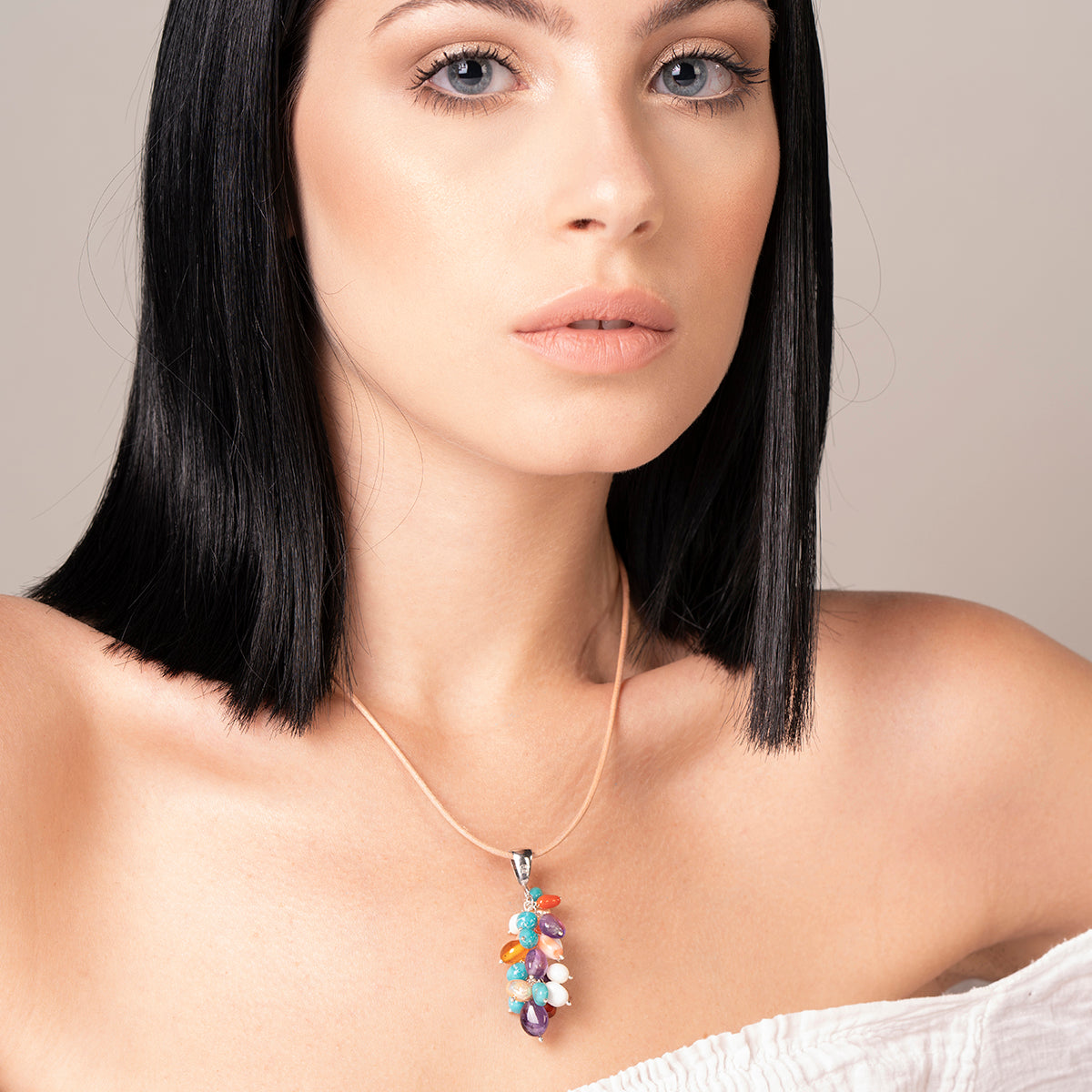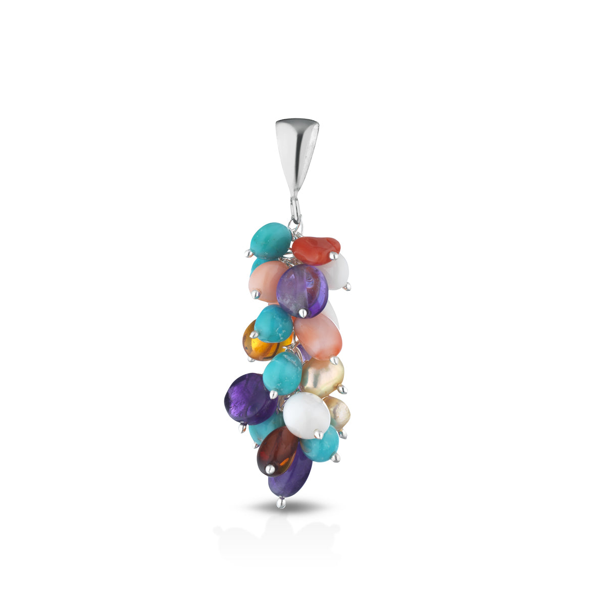 Ciondolo con ciuffo di sassi colorati in pietre naturali e argento 925. Per dare un tocco di allegria ad ogni outfit.