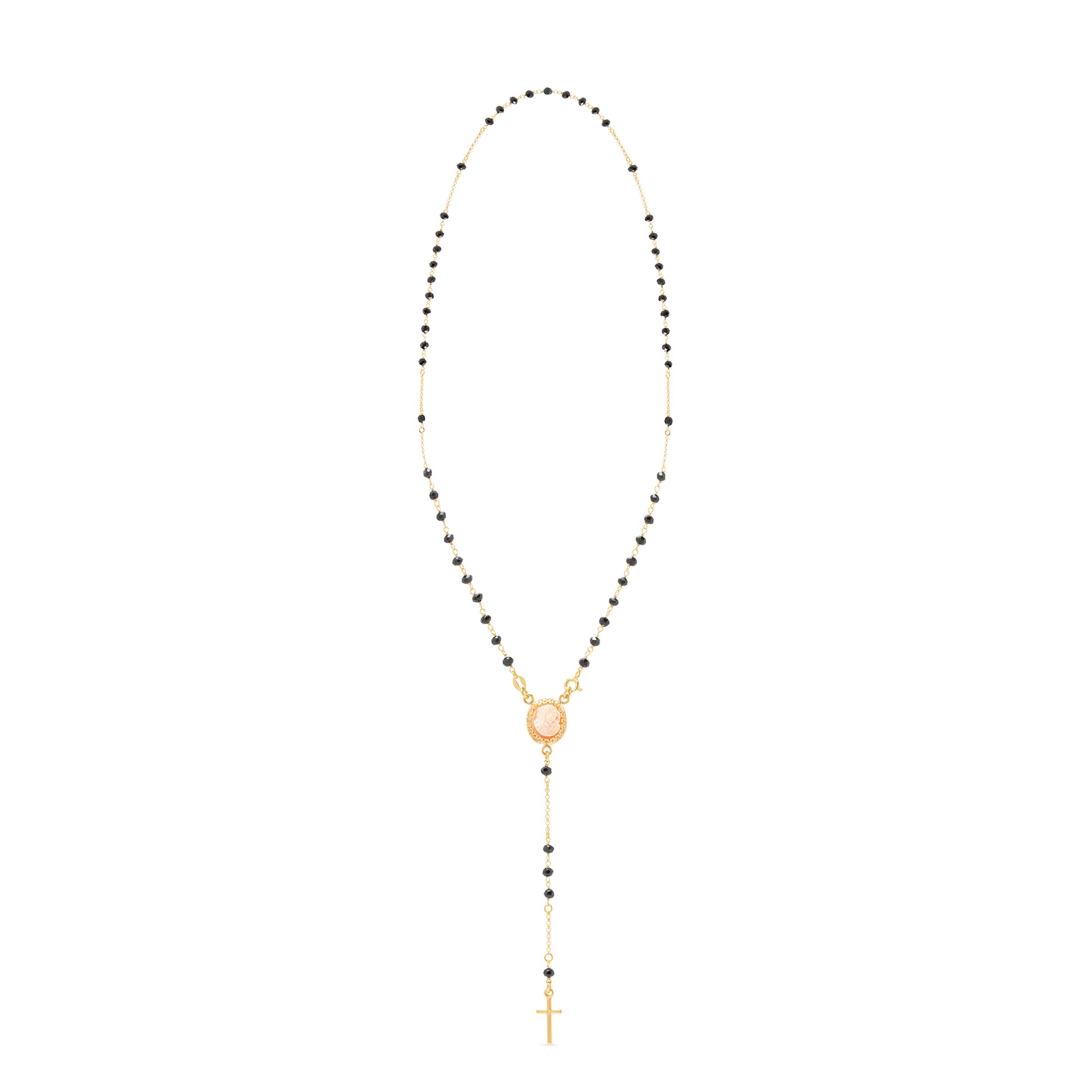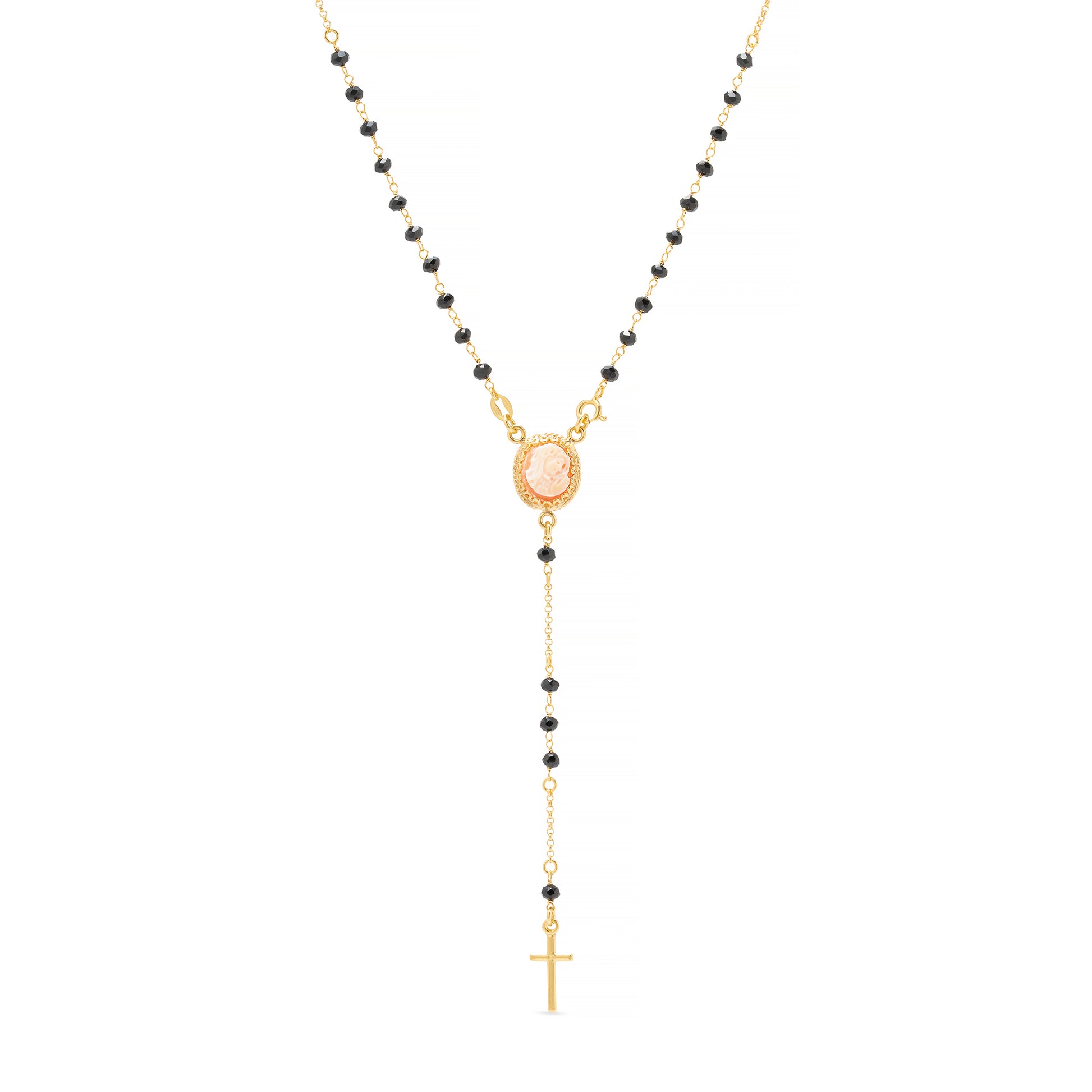 Collana Rosario con cammeo in argento dorato e onice - Russo Cammei