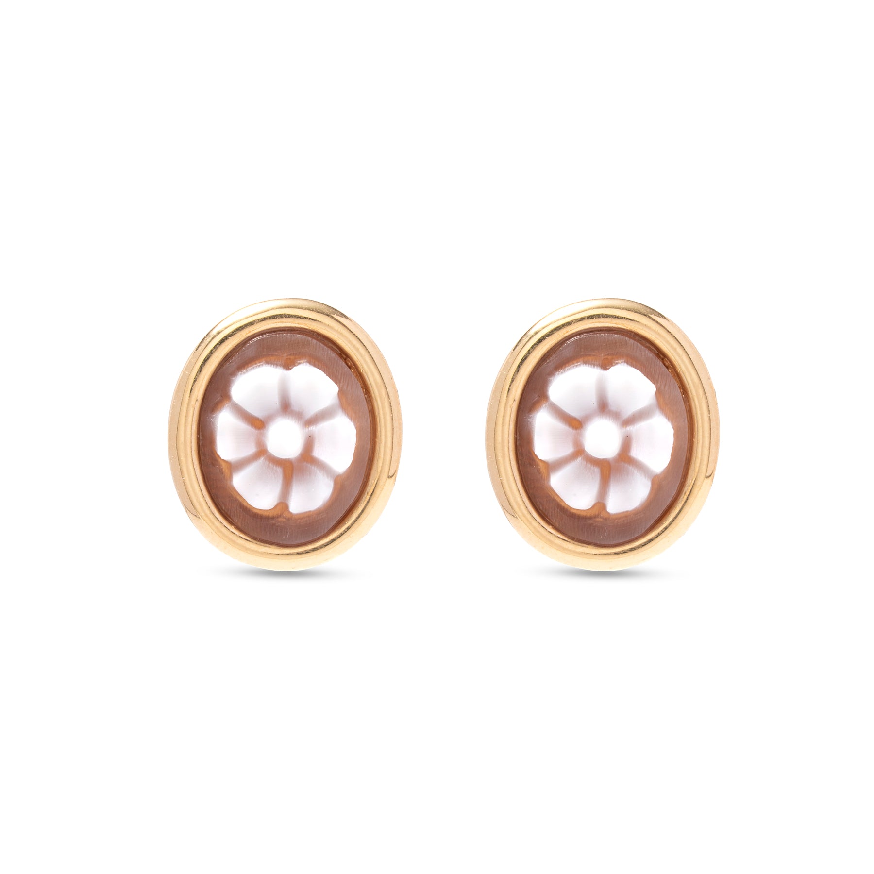 Orecchini a perno con margherita incisa su cammeo- Cameo Italiano