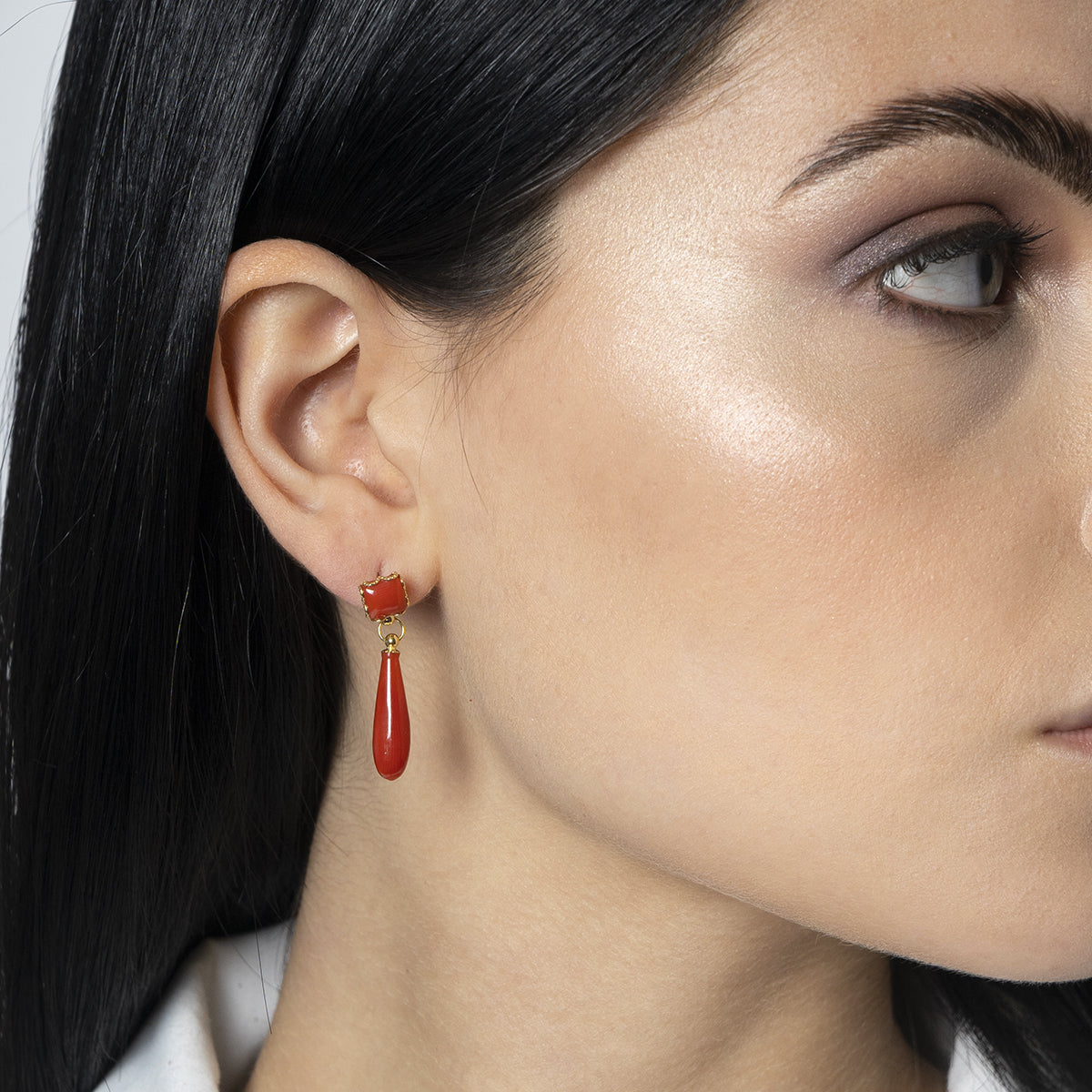 Orecchini in corallo con cabochon quadrato - Iosonopreziosa
