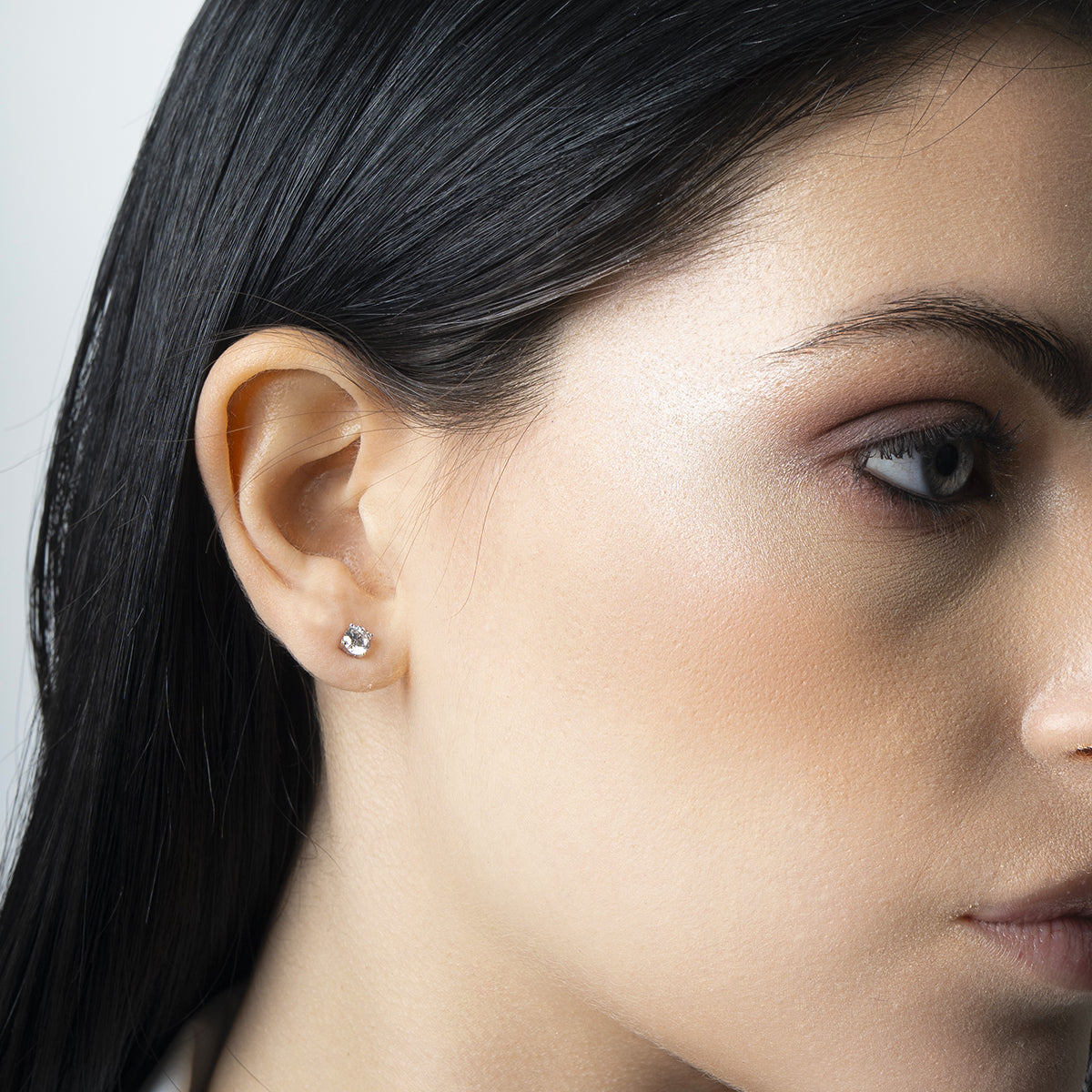 Orecchini punti luce in argento 925 con bagno platino, perno oro 9 kt, luminosi cubik zirconia.